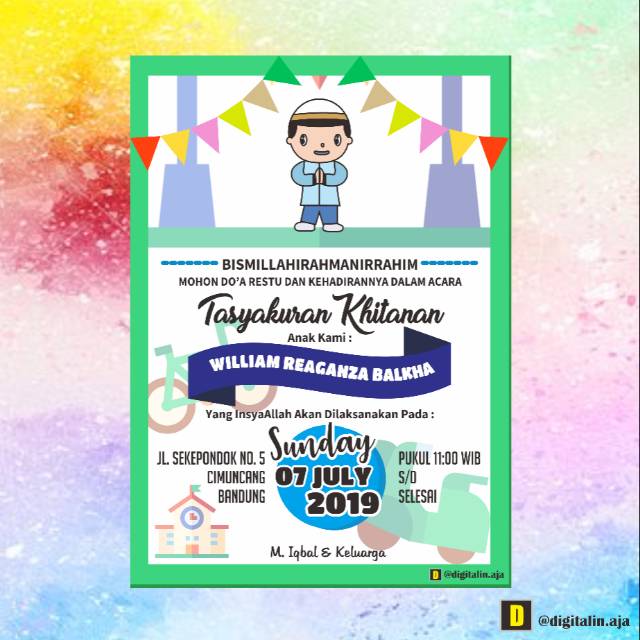 Undangan khitanan kekinian terbaru unchh dede manis mau dikhitan.pesan undangan khitan nya di pelangi.